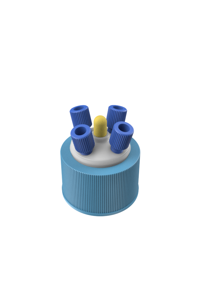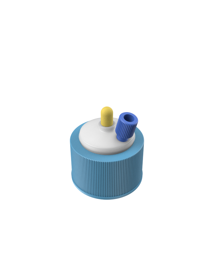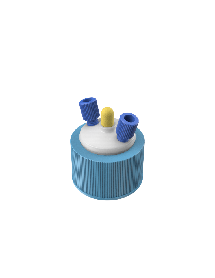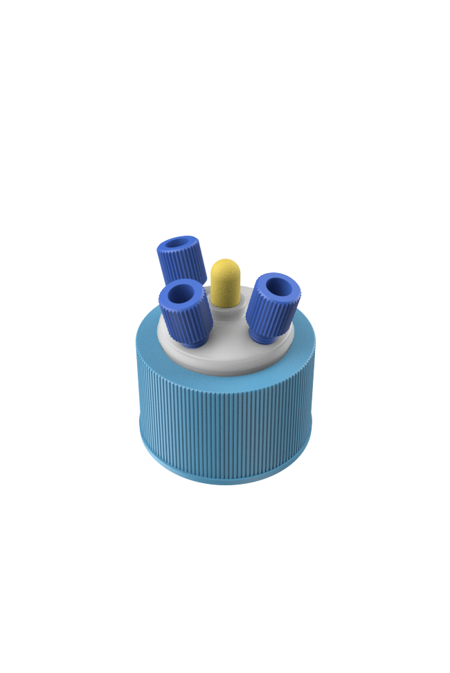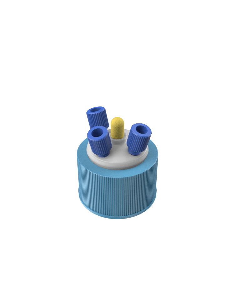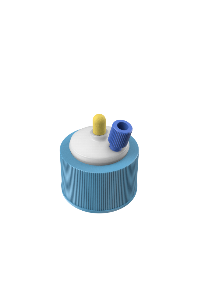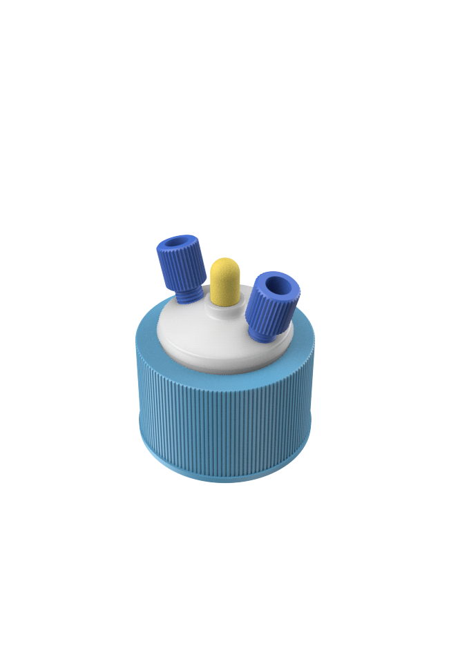 For integrated evaporation control, choose caps with built-in check valves that regulate airflow in a single direction. These valves allow air into the bottle to prevent vacuum buildup while solvents are pumped to the instrument.