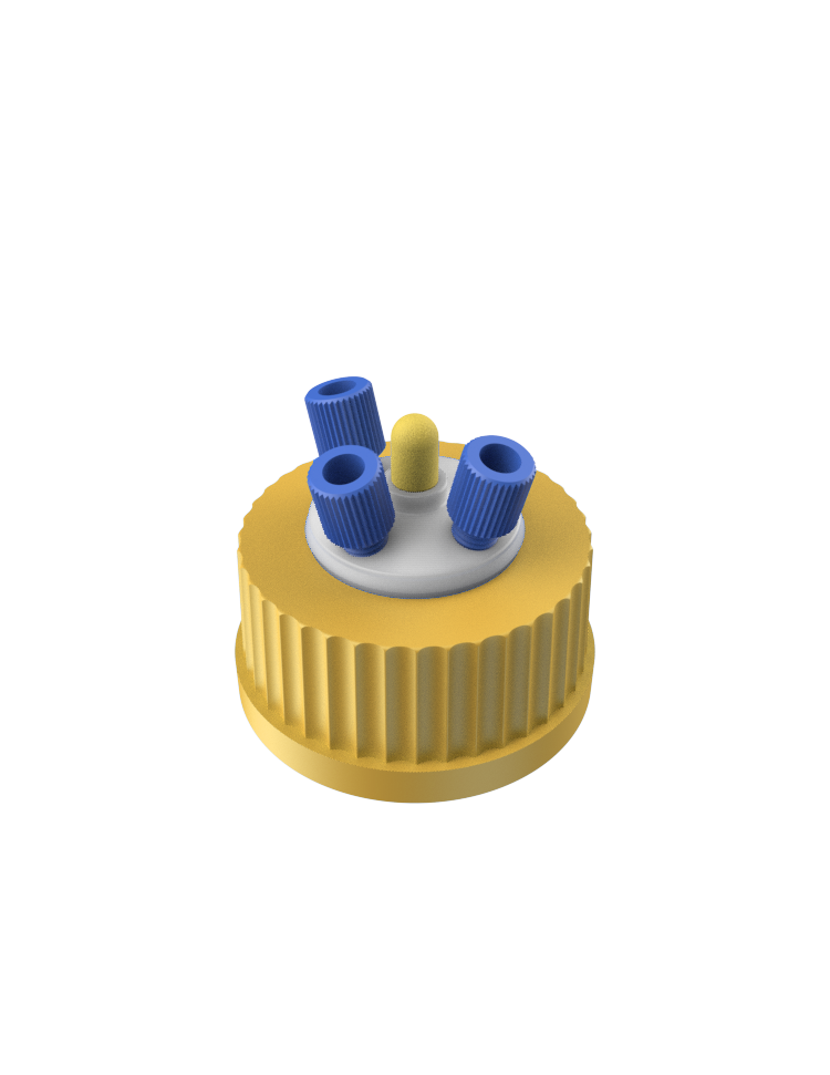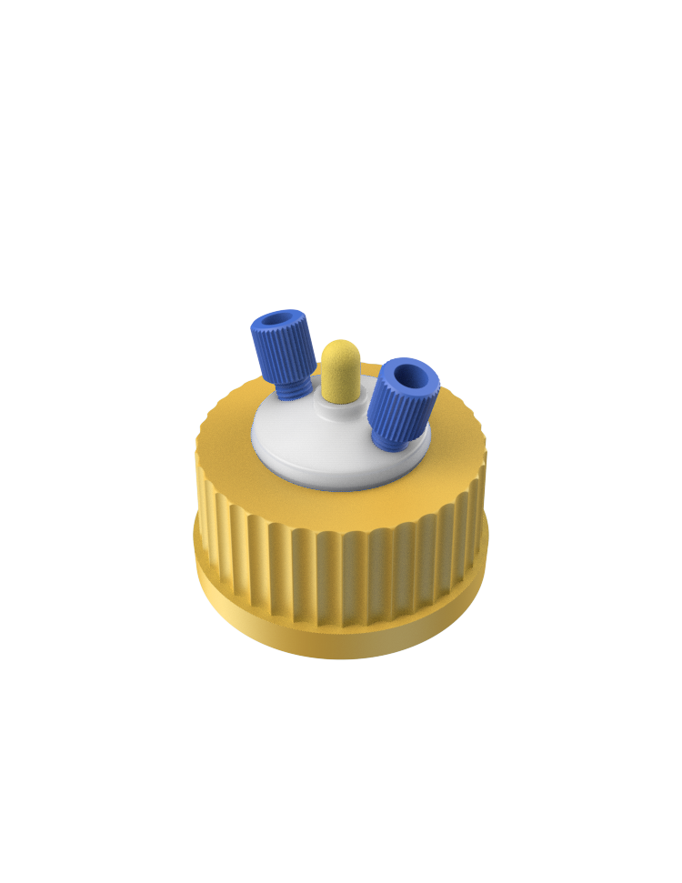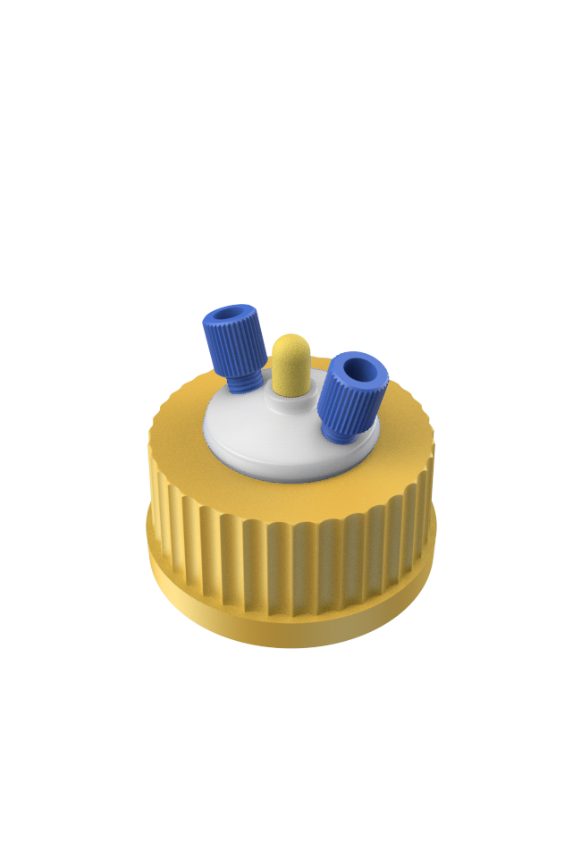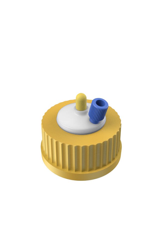 For integrated evaporation control, choose caps with built-in check valves that regulate airflow in a single direction. These valves allow air into the bottle to prevent vacuum buildup while solvents are pumped to the instrument.