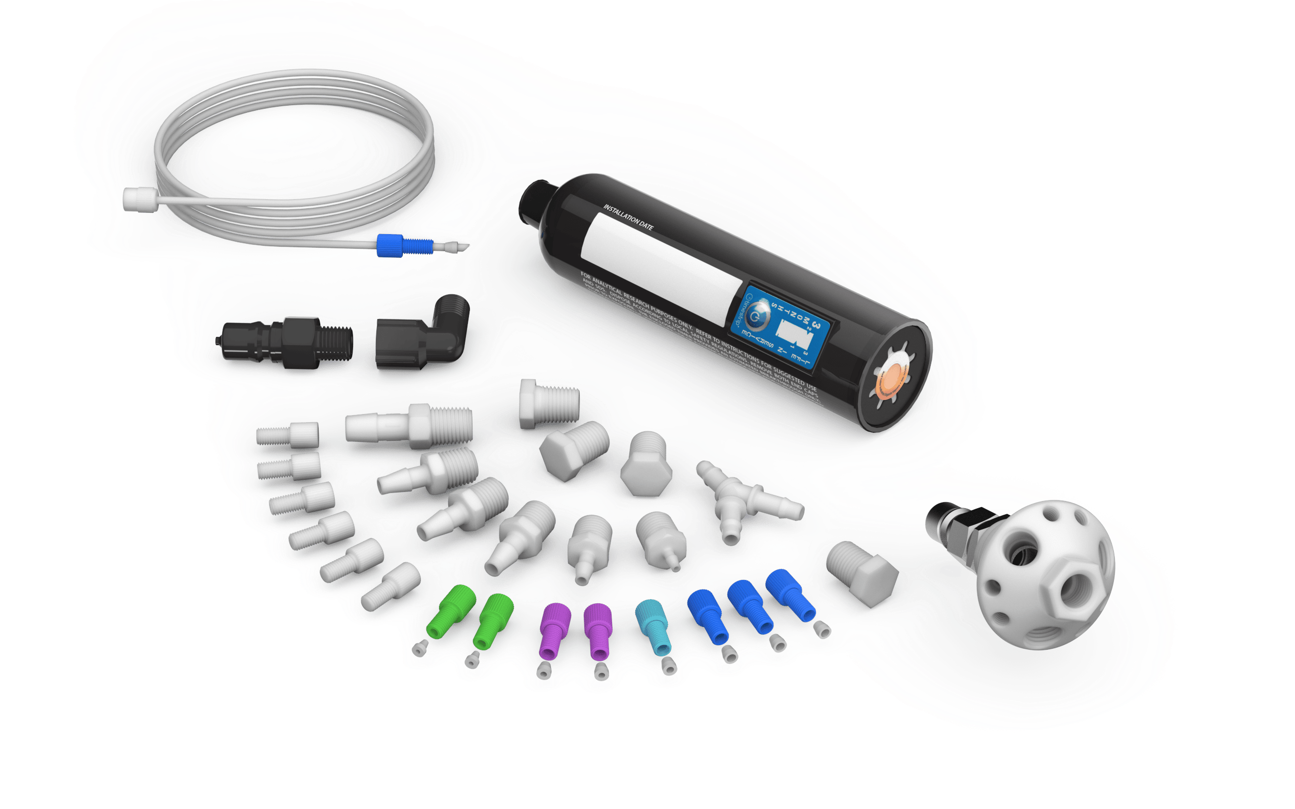 Stainless steel quick disconnects include internal seals (PTFE and perfluorelastomer) compatible with most lab solvents, making this product an ideal choice for use with aggressive chemicals.